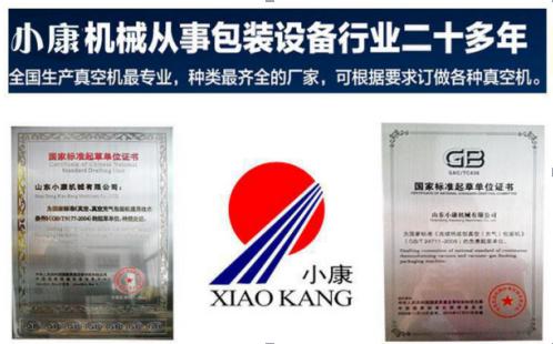 公司通過ISO9001:2000國際質(zhì)量管理體系認(rèn)證和CE認(rèn)證;是中國真空包裝機(jī)行業(yè)中獲取歐盟市場(chǎng)準(zhǔn)入證的企業(yè)。我們受國家質(zhì)檢總局等部委辦的委托,起草編寫了《真空、真空充氣包裝機(jī)通用技術(shù)條件》、《全自動(dòng)連續(xù)拉伸真空包裝機(jī)》、《油炸機(jī)》等多項(xiàng)國家標(biāo)準(zhǔn),還獲得了國家科學(xué)技術(shù)進(jìn)步三等獎(jiǎng)。小康牌真空包裝機(jī),榮獲了中國馳名品牌、中國肉類工業(yè)影響力很強(qiáng)的品牌、中國肉類機(jī)械十佳品牌、中國肉類食品行業(yè)強(qiáng)勢(shì)企業(yè)、中國馳名商標(biāo)、山東省“著名商標(biāo)” 、山東省文明誠信百佳臺(tái)資企業(yè)、多項(xiàng)國家專利。小康公司是中國食品包裝機(jī)械工業(yè)協(xié)會(huì)付會(huì)長單位;中國肉類協(xié)會(huì)常務(wù)理事單位;省、市消費(fèi)者滿意單位;其產(chǎn)品在國家技術(shù)質(zhì)量抽檢中排位非常不錯(cuò)。公司總經(jīng)理孫學(xué)軍榮獲全國“五一”勞動(dòng)獎(jiǎng)?wù)隆⑸綎|省勞動(dòng)模范,并當(dāng)選為諸城市十佳政協(xié)委員、中國肉類加工機(jī)械專業(yè)委員會(huì)副會(huì)長單位、中國肉類協(xié)會(huì)常務(wù)理事。